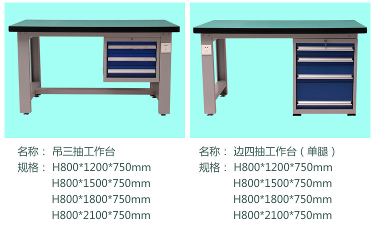 工作臺采用優(yōu)質(zhì)冷扎板精工制作而成,堅固的工作桌框架,牢固平穩(wěn),可使工作桌承重1000kg;多種工作桌面選擇,可配合不同使用的要求;工具吊柜(箱),側(cè)柜(箱)燈架,調(diào)節(jié)腳杯,,外形美觀;層板,抽屜質(zhì)量上乘,承重大,抽屜內(nèi)可根據(jù)需要任意分隔;節(jié)約空間,適用性強(qiáng)。