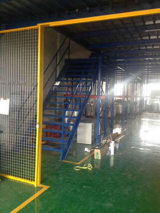 一樓可能通過堆高機(jī)作業(yè),一般擺放可以上貨架的物品及存取頻率比較高的貨物,這樣在閣樓平臺中,將主要作業(yè)集中在一樓,而二樓的貨物,可以通過我們設(shè)置的樓梯通過人工存取,當(dāng)然,有時我們也會根據(jù)客戶要求,設(shè)計上下貨口或升降平臺存取。