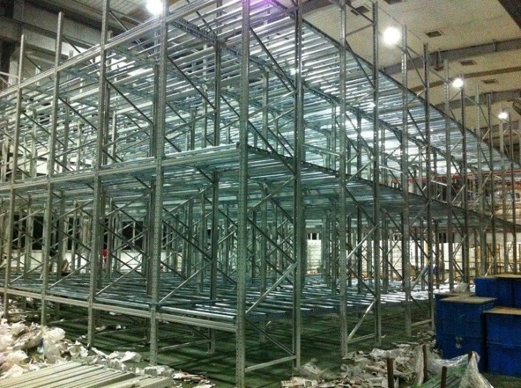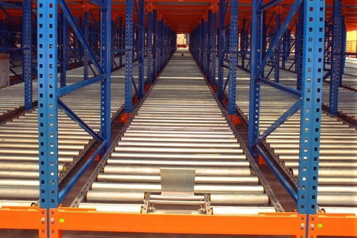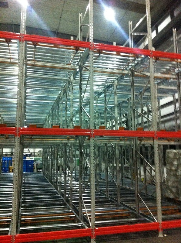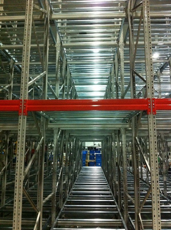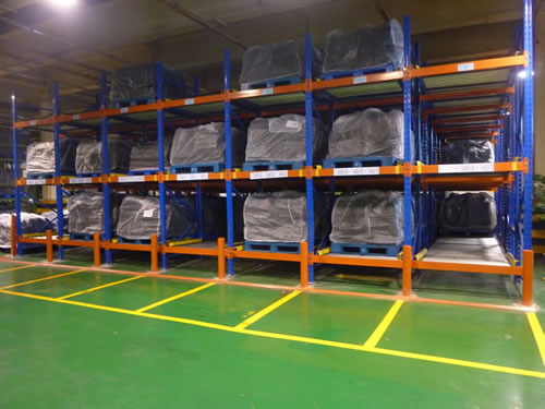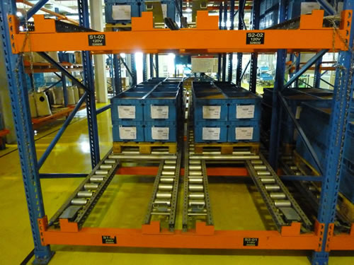 在貨架的組與組之間沒有作業(yè)通道,從而增加了60%的空間利用率,提高了倉儲(chǔ)的容積率;托盤操作遵循先進(jìn)先出的原則;自動(dòng)儲(chǔ)存回轉(zhuǎn);儲(chǔ)存和揀選兩個(gè)動(dòng)作的分開大大提高輸出量,由于是自重力使貨物滑動(dòng),而且沒有操作通道,所以減少了運(yùn)輸路線和叉車的數(shù)量。