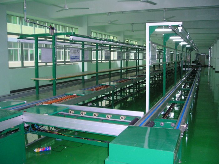 流水線又稱(chēng)為裝配線,一種工業(yè)上的生產(chǎn)方式,指每一個(gè)生產(chǎn)單位只專(zhuān)注處理某一個(gè)片段的工作,以提高工作效率及產(chǎn)量;按照流水線的輸送方式大體可以分為:皮帶流水裝配線、板鏈線、倍速鏈、插件線、網(wǎng)帶線、懸掛線及滾筒流水線這七類(lèi)流水線。一般包括牽引件、承載構(gòu)件、驅(qū)動(dòng)裝置、漲緊裝置、改向裝置和支承件等組成。流水線可擴(kuò)展性高,可按需求設(shè)計(jì)輸送量,輸送速度,裝配工位,輔助部件(包括快速接頭、風(fēng)扇,電燈,插座,工藝看板,置物臺(tái),24V電源,風(fēng)批等,因此廣受企業(yè)歡迎;流水線是人和機(jī)器的有效組合,最充分體現(xiàn)設(shè)備的靈活性,它將輸送系統(tǒng)、隨行夾具和在線專(zhuān)機(jī)、檢測(cè)設(shè)備有機(jī)的組合,以滿(mǎn)足多品種產(chǎn)品的輸送要求。輸送線的傳輸方式有同步傳輸?shù)?(強(qiáng)制式),也可以是非同步傳輸/(柔性式),根據(jù)配置的選擇,可以實(shí)現(xiàn)裝配和輸送的要求。輸送線在企業(yè)的批量生產(chǎn)中不可或缺。